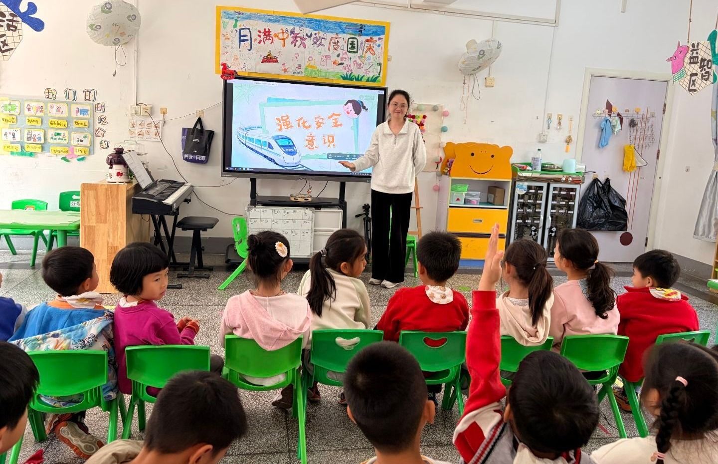 开学第一天,幼儿园有序开展各项工作,早操、开学第一课、户外活动、区域游戏......老师与孩子们良好互动,让幼儿开心的度过幼儿园的生活。