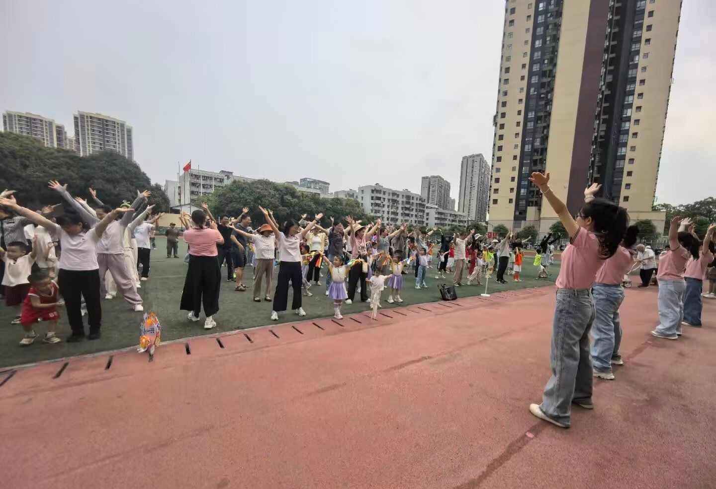 运动会在激昂欢快的氛围中正式拉开帷幕,小运动员们排着整齐的队伍,迈着稚嫩而坚定的步伐有序入场。精彩纷呈的集体表演闪亮登场,为运动会增添了满满活力。教师组带来啦啦操《加油加油》,热情洋溢的表演点燃了全场氛围;亲子操《小宇宙》温馨动人,家长与孩子亲密互动、默契配合,用温暖的舞姿诠释着浓浓的亲子温情。