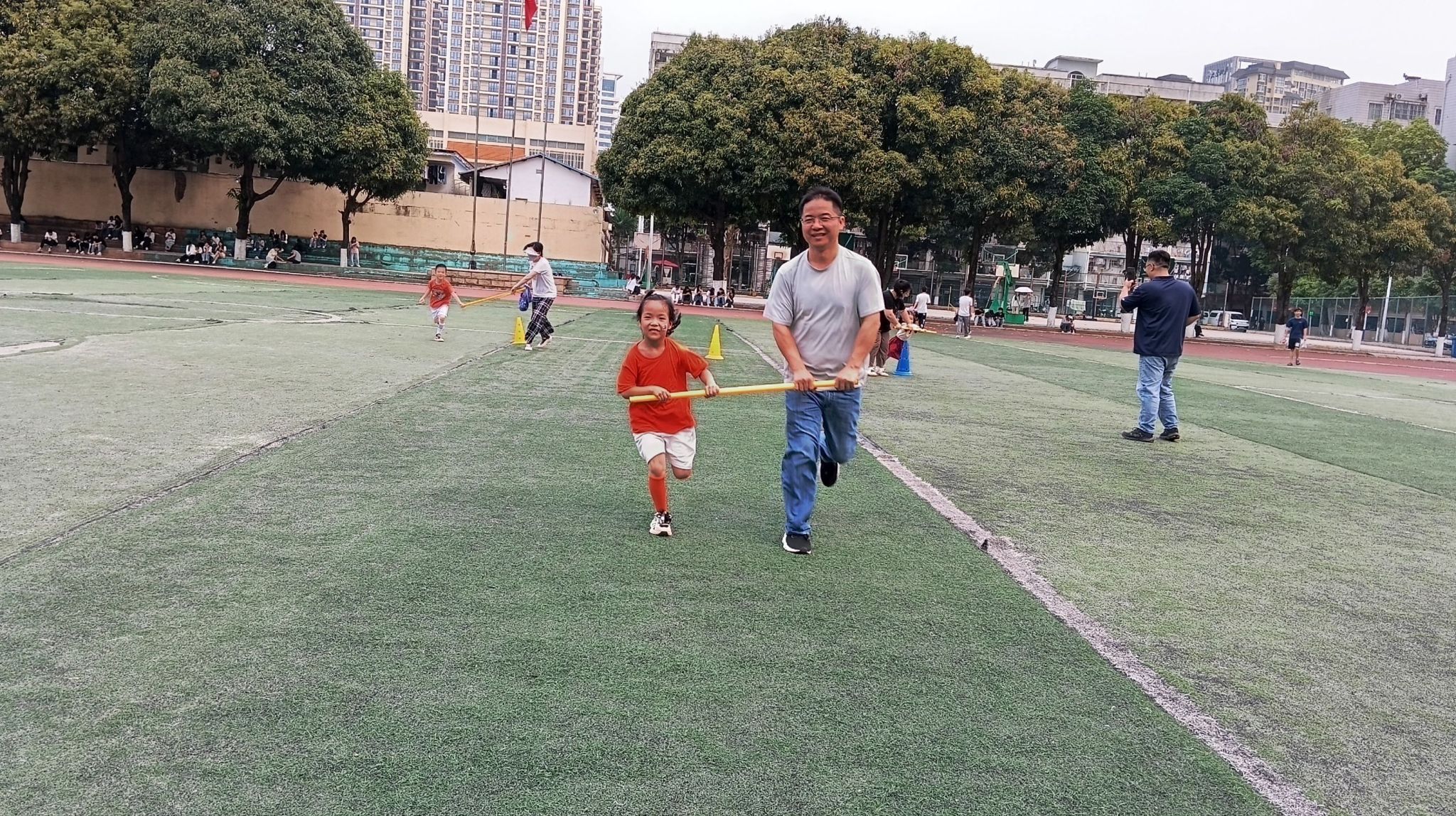 接力赛后,趣味十足的亲子游戏欢乐上线。你抛我接、蚂蚁搬家、快乐小马、滚轮胎、旋风跑、亲子袋鼠跳、极速飞车……一个个妙趣横生的游戏让孩子们乐在其中,家长们也仿佛重返童年,与孩子携手闯关、并肩协作,在互动中感受陪伴的美好。操场上欢笑声、喝彩声、加油声不绝于耳。孩子们与家长在游戏中体验运动乐趣,既锻炼了身体,也收获了成长与勇气。